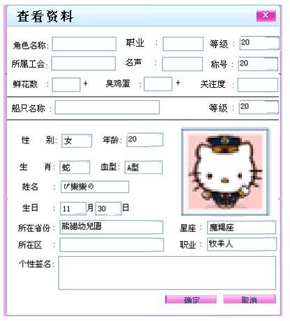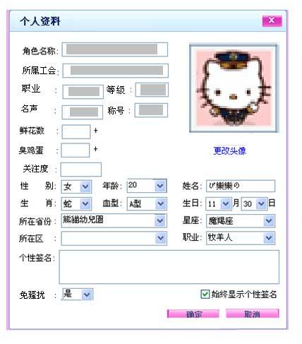 点击编辑个人信息弹出个人资料框,所有灰色部分都是玩家不可修改的。