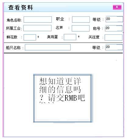 玩家查看他人详细信息的时候首先弹出免费版的查看资料框,在这个信息框内可以查看部分信息。