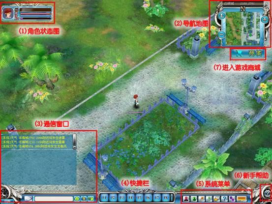 1.角色状态拦:这是显示角色状态的窗口,包括:角色头像、HP(生命值)、MP(法力值)、EXP(个人经验值)
