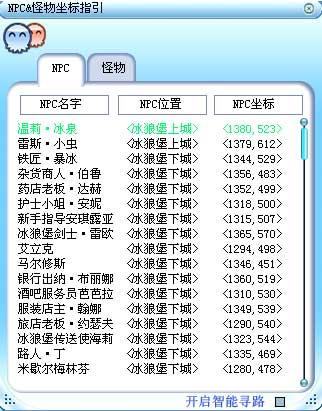 2、 玩家在使用“NPC&怪物坐标指引”功能时,玩家点击某个怪物或NPC时,会自动启动该功能,通过一个图标指引被查询的坐标外,还会自动跑向该坐标。