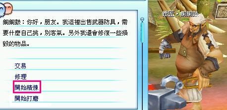 2. 与沙岚铁匠(902,3495)对话,选择『开始精炼』,会出现道具精炼图。